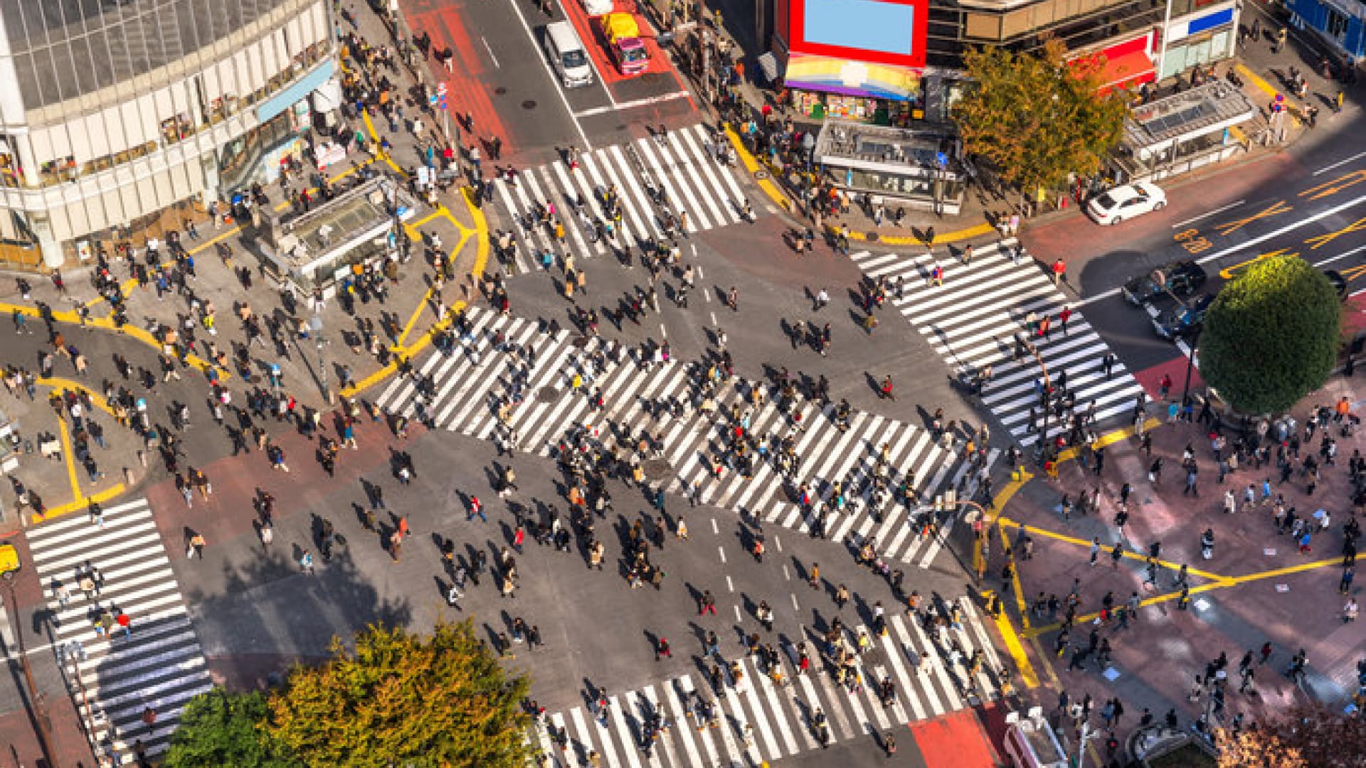 The number of people crossing the scramble crossing at one green light is said to be about 3,000.