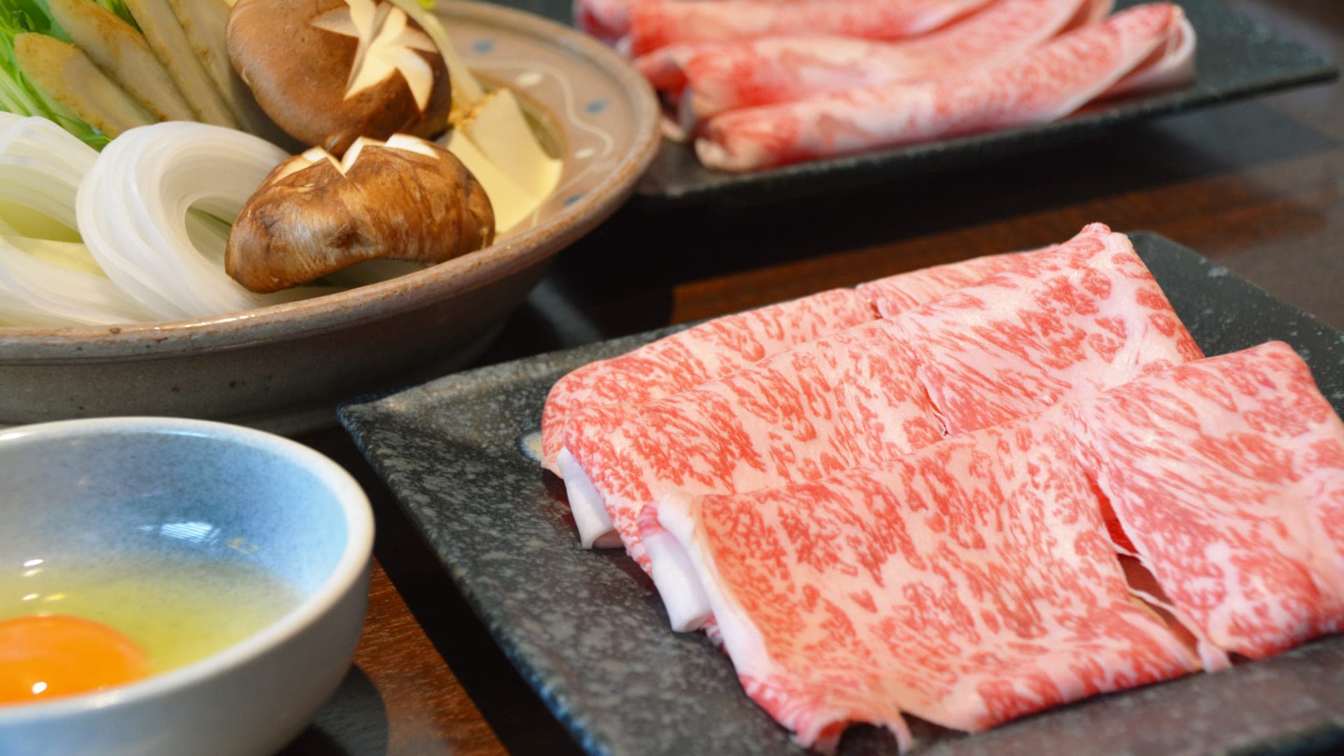 Sukiyaki is a classic Japanese hot pot dish where beef and vegetables are simmered in a sweet and savory broth (warishita). Premium wagyu sukiyaki, using tender marbled beef, is considered one of Japan's most luxurious dishes. Thinly sliced beef is briefly seared, then simmered with vegetables such as Chinese cabbage, shiitake mushrooms, green onions, and chrysanthemum greens, along with shirataki noodles and grilled tofu.