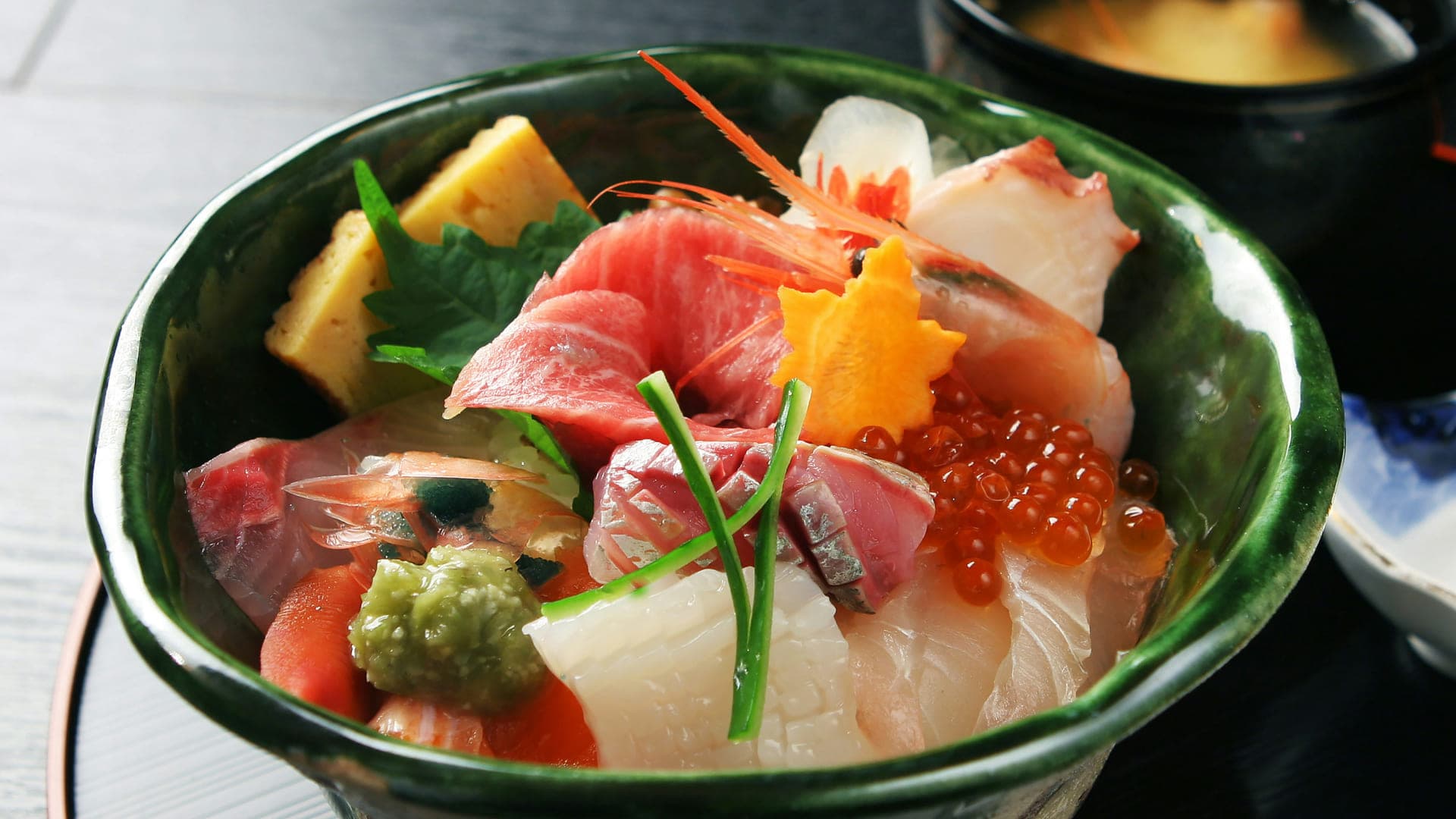 Kaisendon is usually eaten with soy sauce and wasabi according to taste. It's a luxurious dish that lets you enjoy the different textures and umami of colorful ingredients, complemented by traditional condiments.