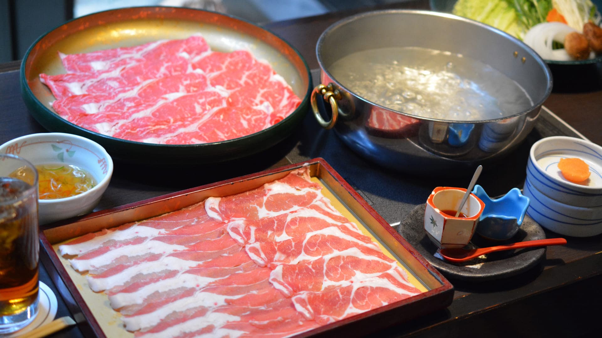 Shabu-shabu is a hot pot dish where thin slices of beef or pork are briefly swished in hot kombu-based dashi broth. The name comes from the "swish-swish" sound made when cooking the meat. When using marbled wagyu beef, the meat becomes melt-in-your-mouth tender.