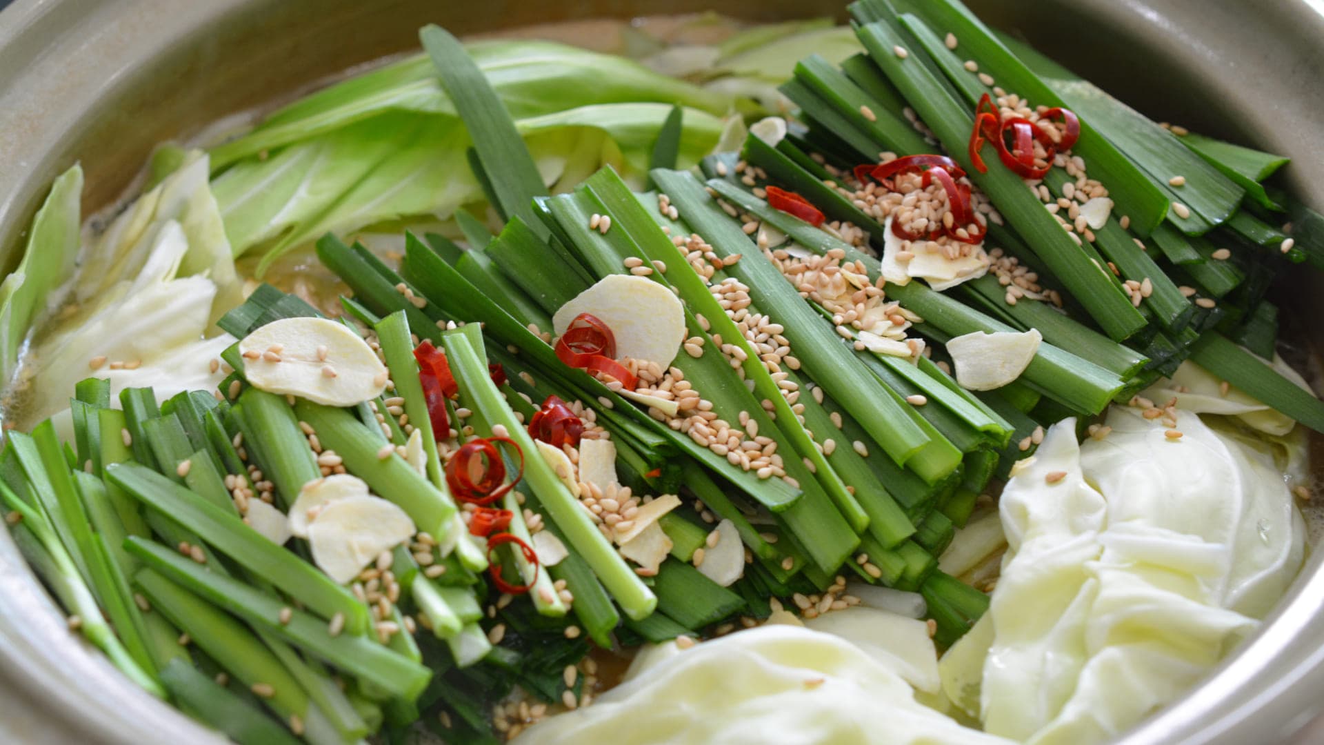 Motsu-nabe, originating from Fukuoka, is a hot pot dish featuring beef offal and vegetables cooked in a spicy miso or soy sauce-based soup. Fresh offal, rich in collagen, offers a springy texture and deep umami, while vegetables like cabbage, Chinese chives, and burdock root complete the dish. The soup, flavored with garlic and chili peppers, pairs perfectly with the ingredients, typically finished with champon noodles or rice porridge.
