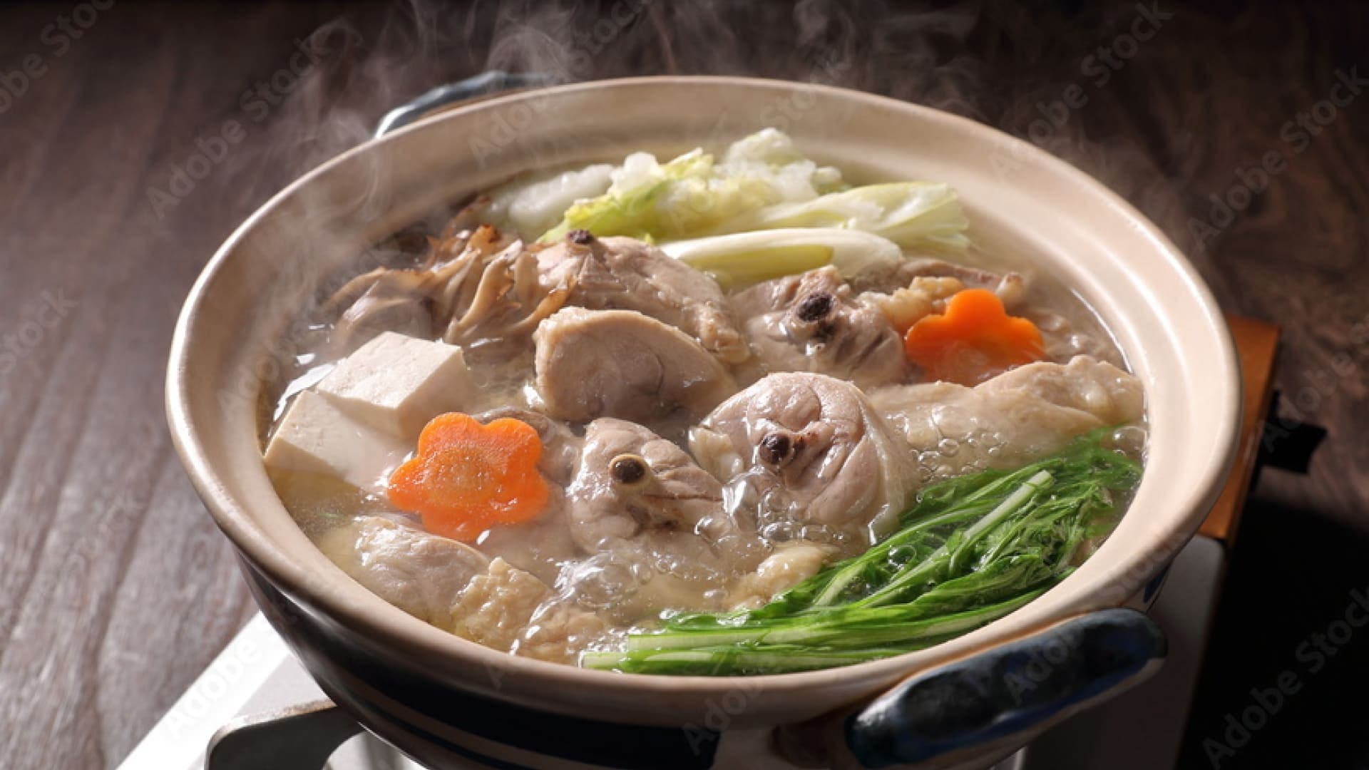 Mizutaki is an elegant hot pot dish originating from Fukuoka, featuring chicken and vegetables cooked in a clear, milky broth. With fresh chicken as the star ingredient, it's prepared with vegetables like Chinese cabbage, chrysanthemum greens, and mushrooms in a simple salt-based soup.