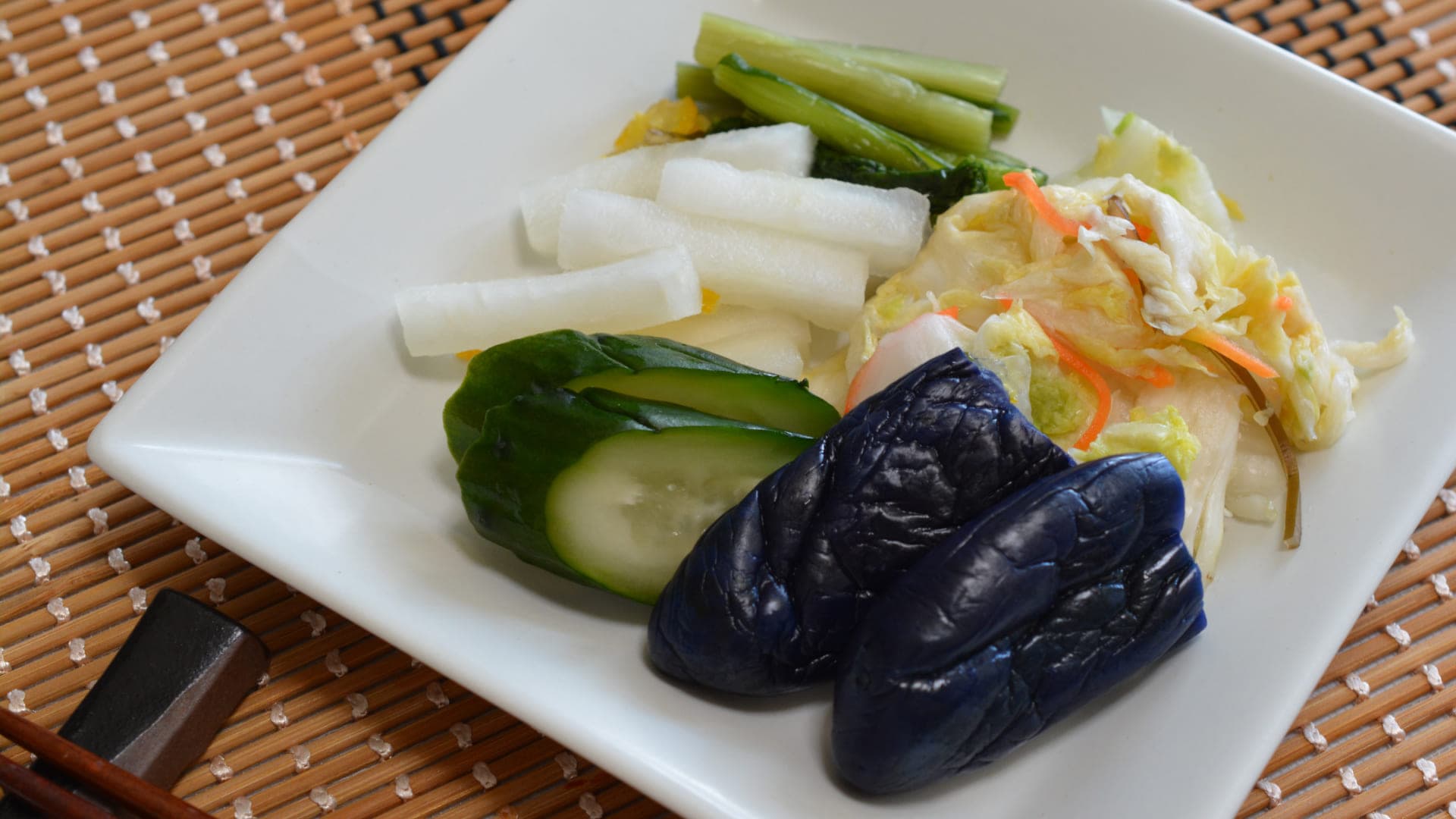 Tsukemono are traditional Japanese pickled and fermented vegetables that have been preserved with salt, rice bran, or miso. They are an indispensable accompaniment to plain white rice and are almost always served as part of a traditional Japanese meal.