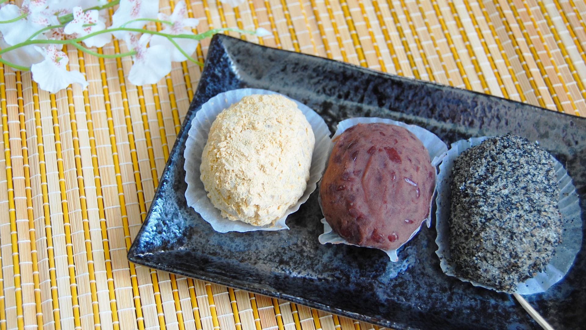 While traditionally covered with smooth or coarse sweet bean paste, variations include kinako (soybean flour) and black sesame coatings. It's commonly homemade during the spring and autumn equinox periods (Ohigan), when families share them as part of traditional celebrations.